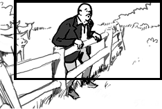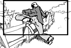 CUT-TO JEAN'S POV of the VILLAGERS. | CUT-TO JEAN running away from FENCE. | CUT-TO VILLAGERS and COWS approaching each other in curiosity. |