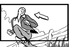CUT-TO CAMERA PAN of JEAN running towards FENCE. | CUT-TO JEAN jumping over FENCE. | JEAN turns to look at the VILLAGERS. |
